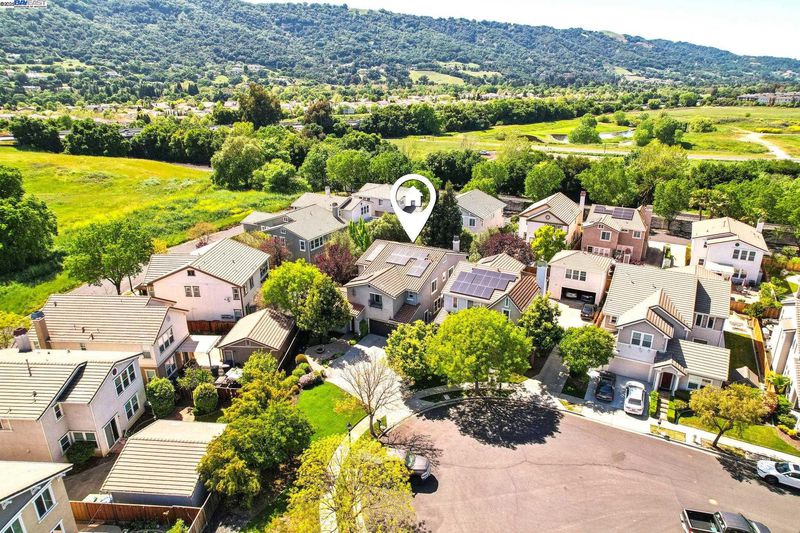 This EAST-facing 5-bedroom plus office, 3-bath home is located in Canyon Oaks at the end of a quiet cul-de-sac on a premium 9,730 sq ft lot. With 3,365 sq ft of living space, it seamlessly blends luxury, comfort, and eco-conscious design. A full bedroom and bath downstairs provide flexibility for guests or multigenerational living, while a private office with custom barn doors adds both function and style. Enjoy energy independence with a fully owned 9.2kW solar system, Low-E2 double/triple-pane windows, and sustainable construction materials. Thoughtful upgrades include custom French doors, Hunter Douglas shutters, closet organizers, a smart tech hub, and full insulation in the walls, ceilings, and garage. The great room is ideal for entertaining, featuring built-in surround sound, a fireplace, and wet bar. The gourmet kitchen is equipped with granite counters, an island, extensive cabinetry, and high-end Dacor and KitchenAid appliances. Step outside to a private backyard retreat complete with a built-in BBQ, pergola, and spa. The oversized driveway accommodates four cars. Close to top-rated Pleasanton schools, downtown, shopping, dining, and easy access to 680.