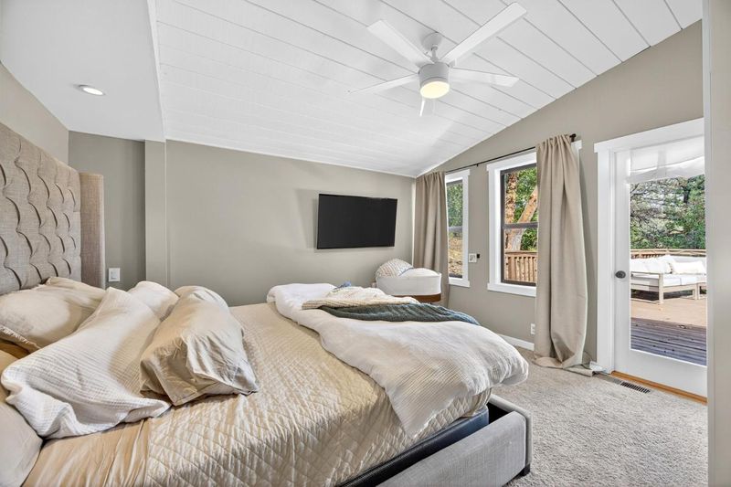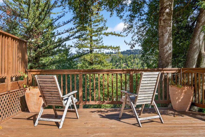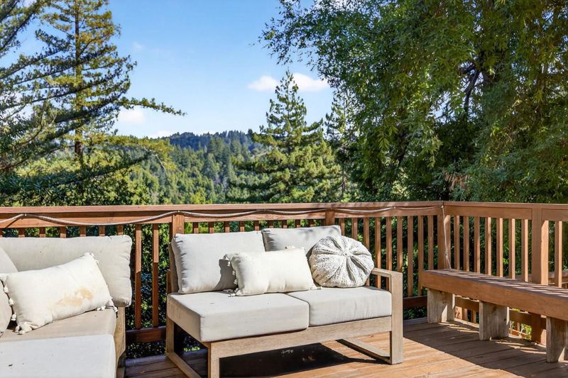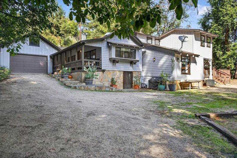 So much newness! Expanded from original cabin around 2008. Since 2021: New oak floors, new whole house generator, new steel ducting, much more. Charming 4 bd. 3.5 ba. home is modernized and part of Los Gatos history. Primary plus one more en-suite bdrm! Natural light fills the living areas including the kitchen where a large center island, gas stove, and lots of counter space make cooking a joy! The primary suite opens to the back deck with beautiful views and features a walk in closet and oversized tub for the ultimate relaxation. One additional en-suite room, plus 2 more bedrooms! An inviting living room with cozy Jotul gas stove opens to the back deck where the jacuzzi awaits. What is a mtn. home without a wood-beam ceiling wine cellar? Keep your collection cool in this fun space! Steps away, a separate stand alone office space, updated in 2024 and now complete with AC/Heat, recessed lighting, and more, perfect for work-from-home, she-or-he-shed or other! Frontier fiber ready, Starlink available. 3.5 ac. lot, some usable land! Fruit trees produce in abundance, chicken coop is ready for your chickens, sun and shade, this is a truly beautiful setting! It's quick and easy to get onto Bear Creek Road and then you are just 8.7 miles into downtown Los Gatos. Los Gatos schools!